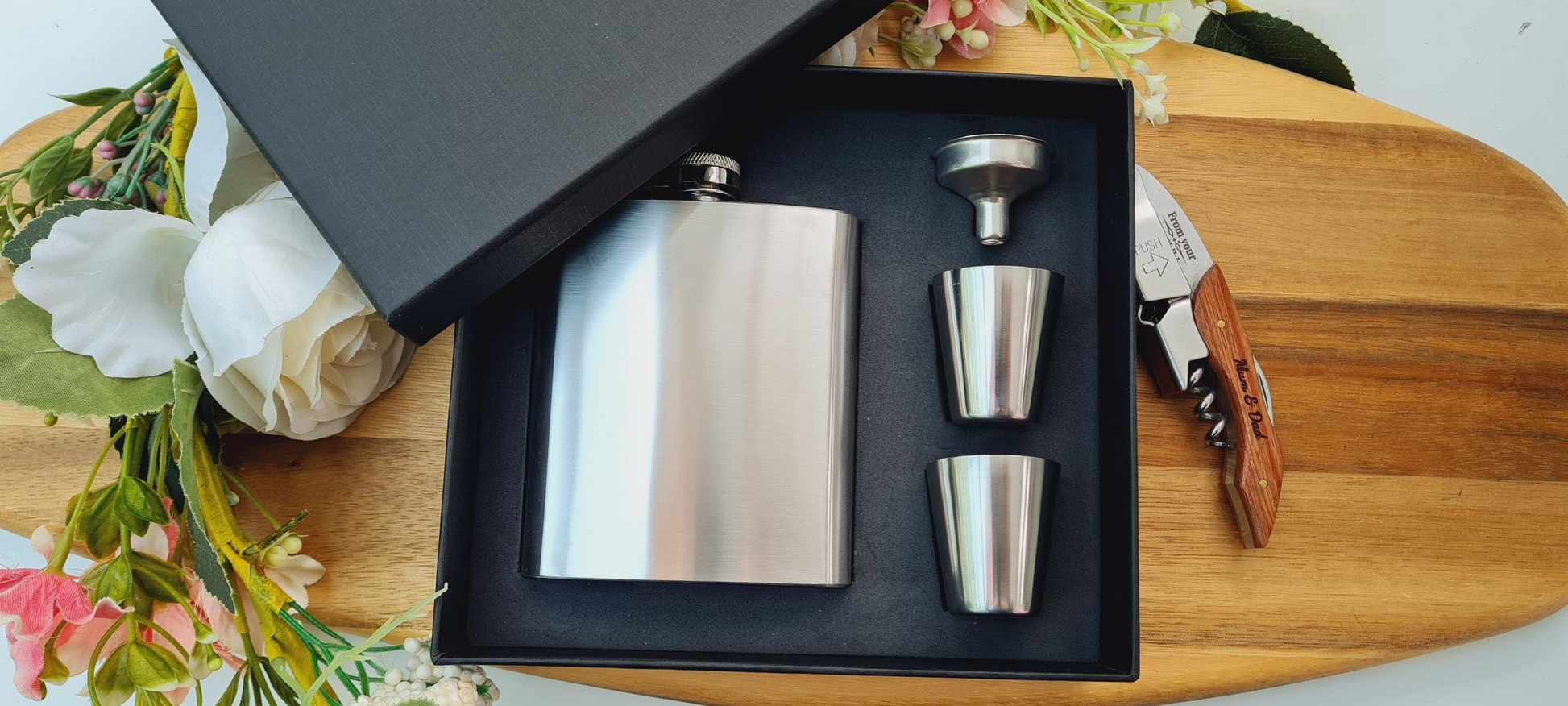 Our Laser engraved hip flasks are the perfect gift choice for birthdays, anniversaries, and weddings